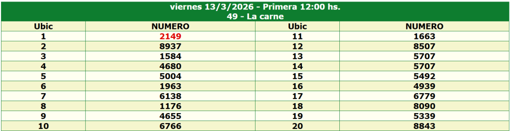 Resultados de Hoy Quiniela de San Luis