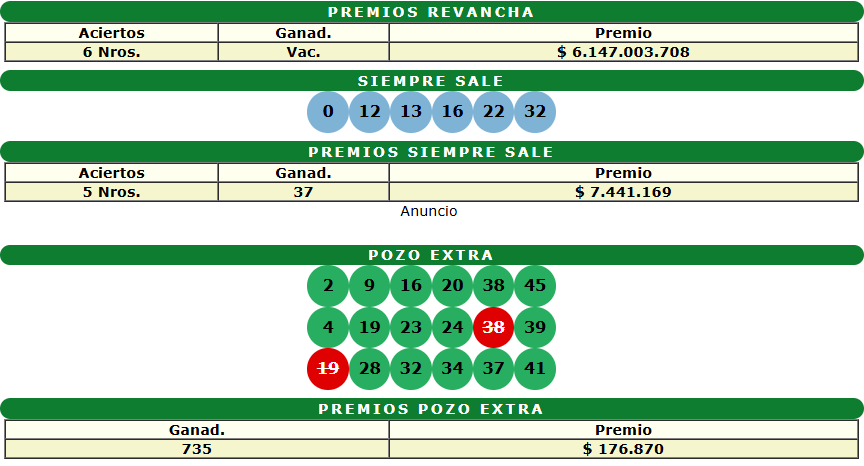 - Premio mayor (6 aciertos) → Puede superar los 1.000 millones de pesos.